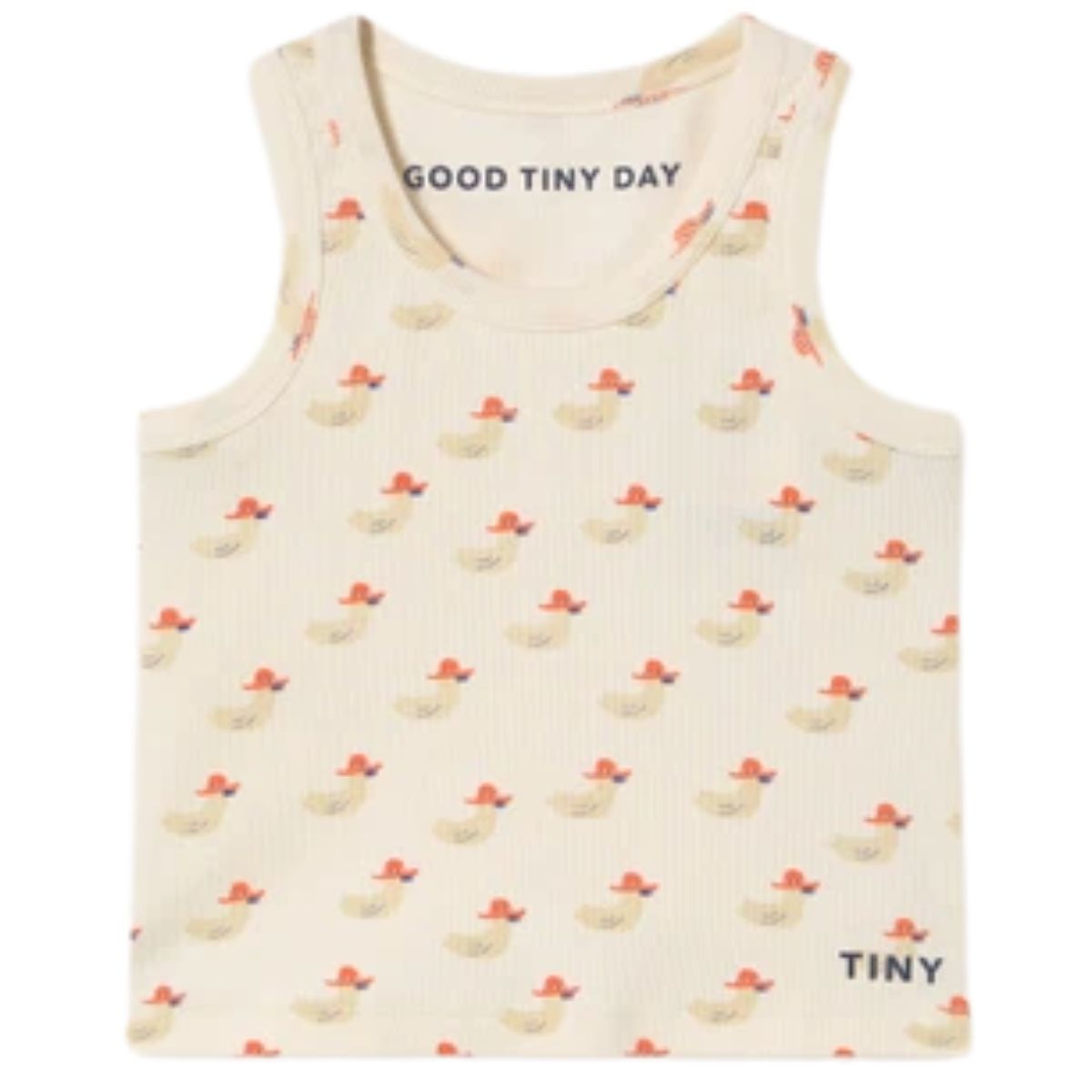 The Ducks Tank Top from Tiny Cottons. Always on the lookout for fun. Crafted from a soft organic cotton blend fabric, this rib tank top is a perfect option for any summer day. A unique mix of playful and elegant, it features a bold Ducks print and a simple, timeless silhouette.