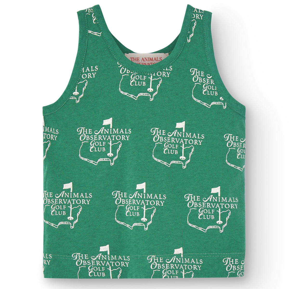 The Green Cool Macaque Tee from The Animals Observatory. Tank top for babies with a cool white print. Soft and stylish, perfect for little adventurers.